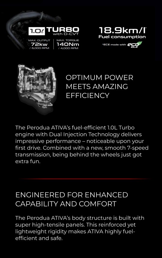 The Perodua Ativa brings together turbocharged power and smooth efficiency in a way that feels effortless, so you can focus on enjoying the road ahead.